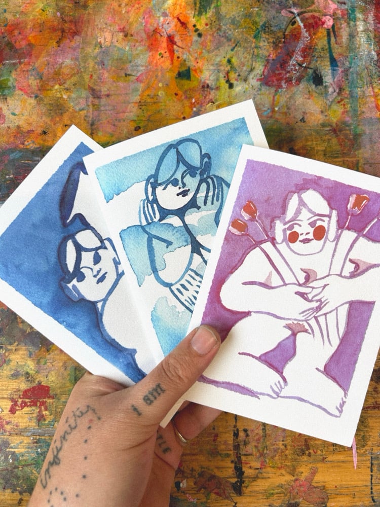 3x Greeting Cards, various designs and colours, size A6, textured card stock with smooth interior for writing ✍🏼 Each card is based on an original watercolour drawing